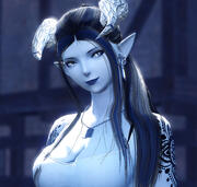 In front of Seloria now stood a tall, fair skinned man. He had a stern expression, and had the typical elezen jawline and ears. His raven hair fell down to his lower back, and framed his soft, heart-shaped face perfectly. His hair, at the moment, was tied in a messy ponytail, which gave her more view of his face. His eyes were sharp and cold, and shone like fire and blood against the shadows of the cave. His lips were curved, and were perfectly shaped like a bow; it was like he was sneering at her.